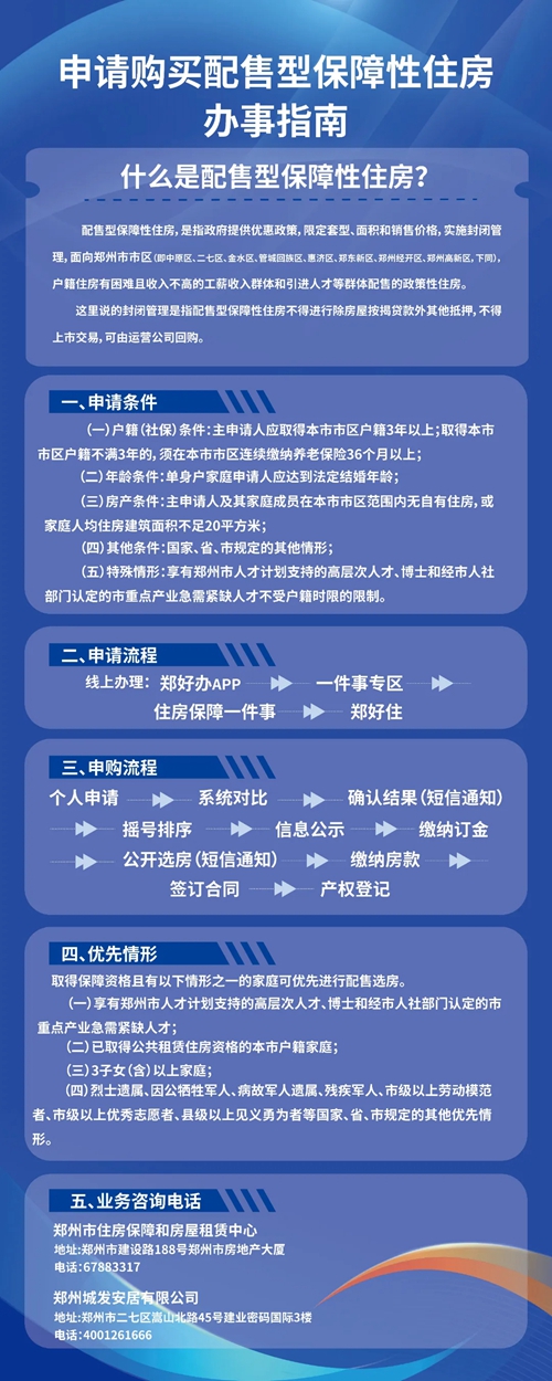 如在申請(qǐng)過程中有任何疑問,可以撥打鄭州市住房保障和房屋租賃中心咨詢電話:0371-67883316、0371-67883317;鄭州市城發(fā)安居有限公司咨詢電話:4001261666。咨詢時(shí)間為配售項(xiàng)目申請(qǐng)期間:8:30至20:00,其他時(shí)間(工作日):8:30至18:00。