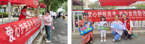 “愛心助考點”服務(wù)站內(nèi),高考專用尺、簽字筆、鉛筆、橡皮等文具整齊擺放,為考生解決不時之需。志愿者們身著統(tǒng)一服裝,手拿“逢考必勝”“加油,你一定可以”“全力出擊 踏歌前行”等祝福手卡,用微笑表達(dá)對高考學(xué)子的祝福。
